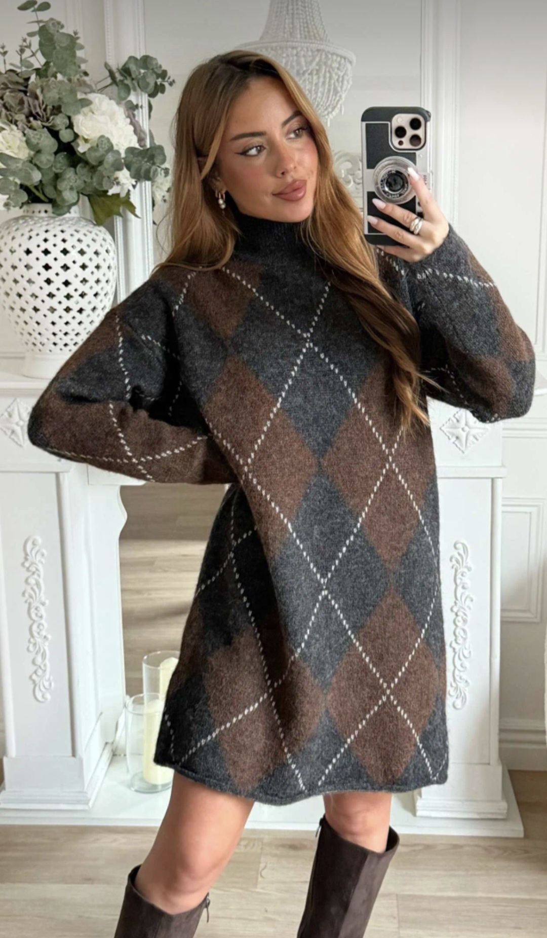 Style sweaterjurk Alicia met knielaarzen voor een stylish look.